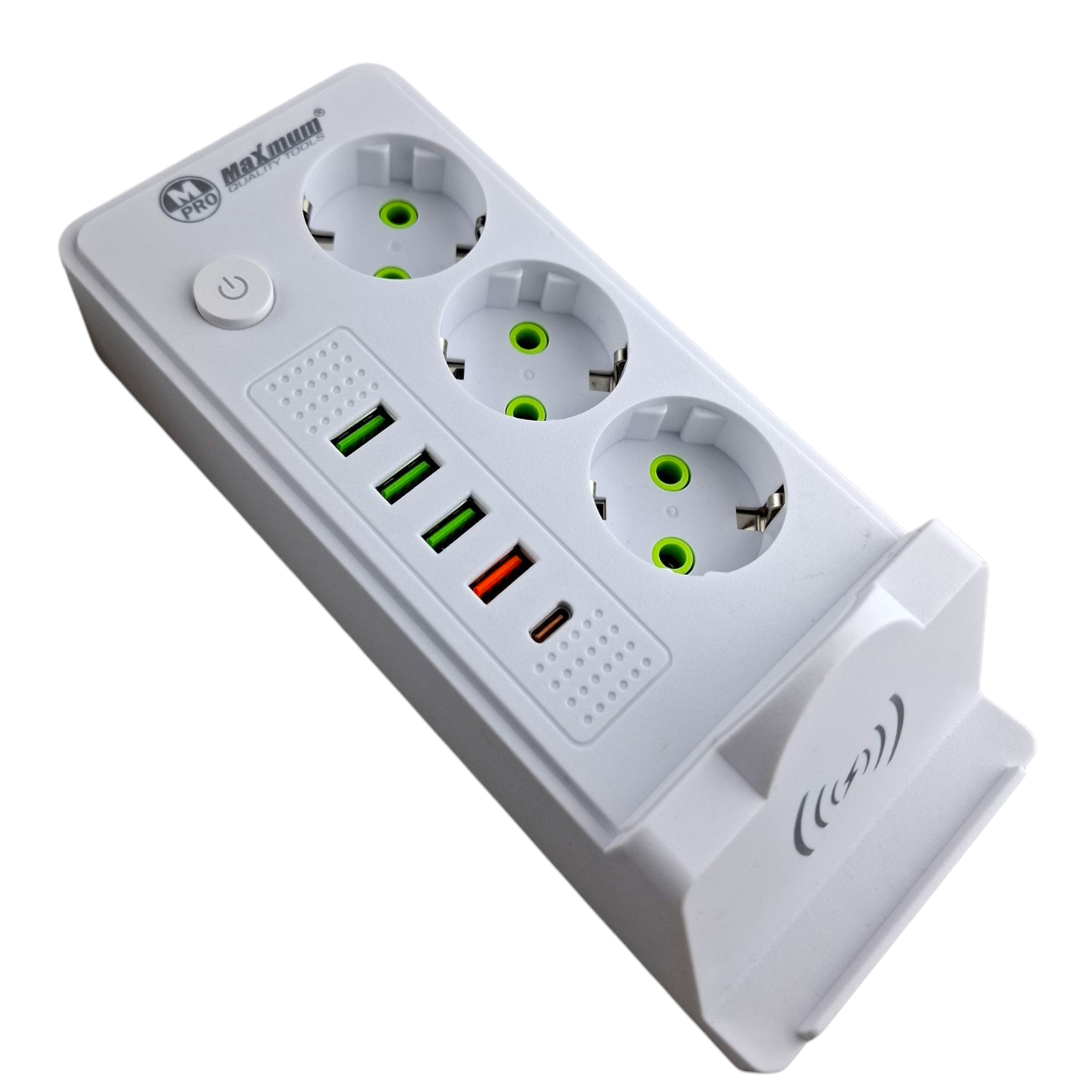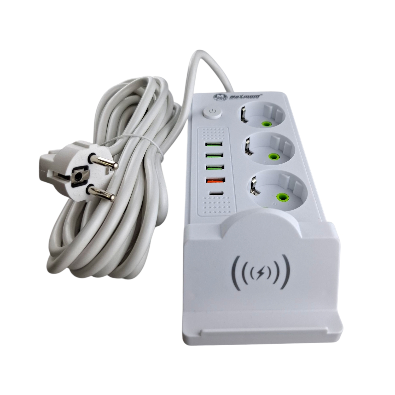 [~NAME] => Удлинитель с заземлением 2 м, плоский, 3 розетки EU_UK_US, 5 USB портов,Type C,T05, "MAXIMUM" MX 148