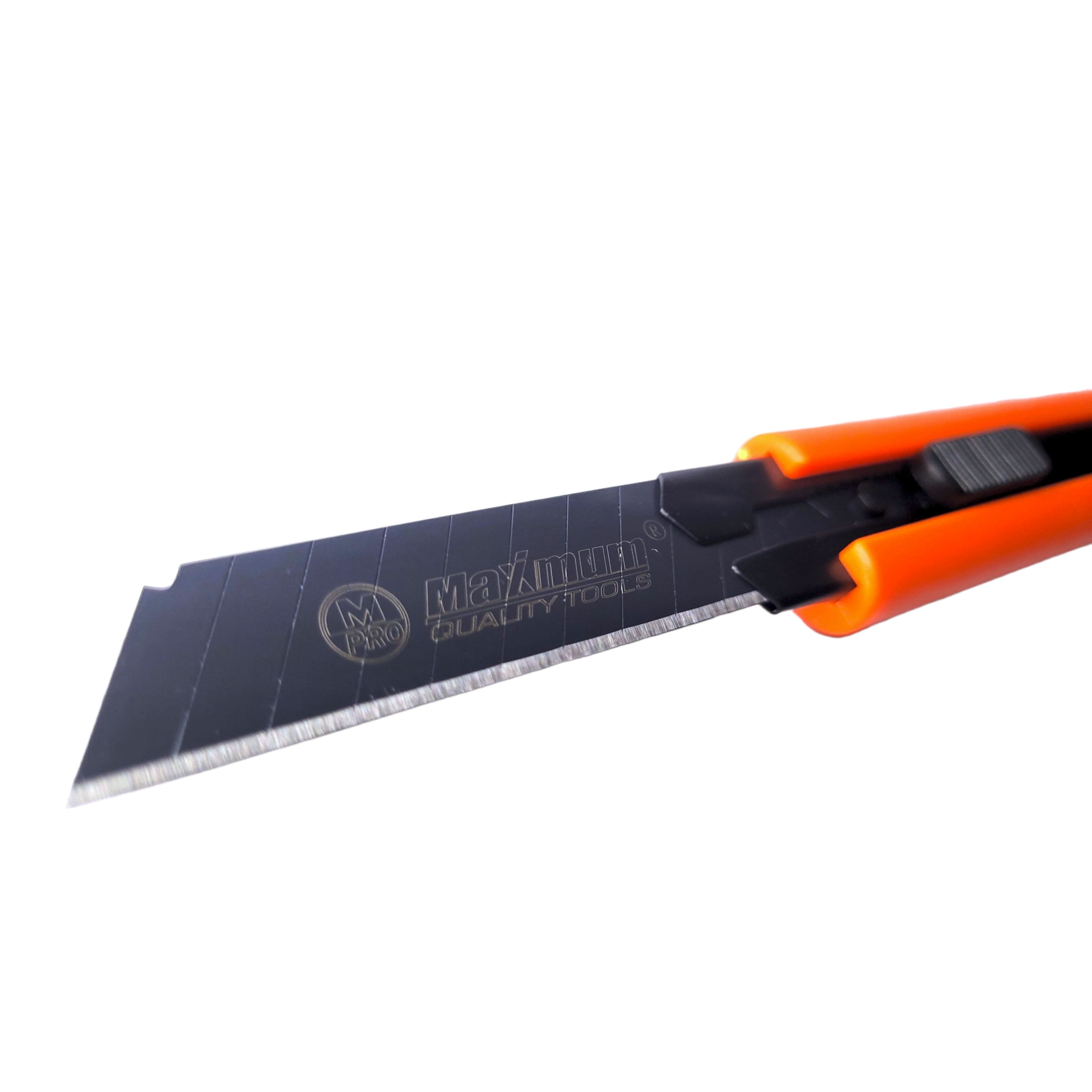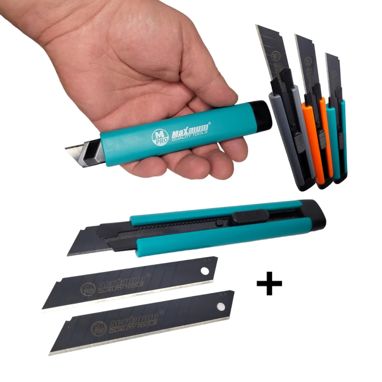 Нож канцелярский/строительный с кнопкой фиксации от "Maximum Quality Tools" предназначен для разрезания гипсокартона, бумаги, обоев, картона, ковролина, линолеума и т.п. Стильный пластиковый корпус выпускается в 3 цветах и дополнен металлической направляющей, а также отсеком для запаски. Общая длина ножа 160 мм, ширина 30 мм. Усиленный канцелярский нож поставляется с 3мя чернеными лезвиями толщиной 0.6 мм.