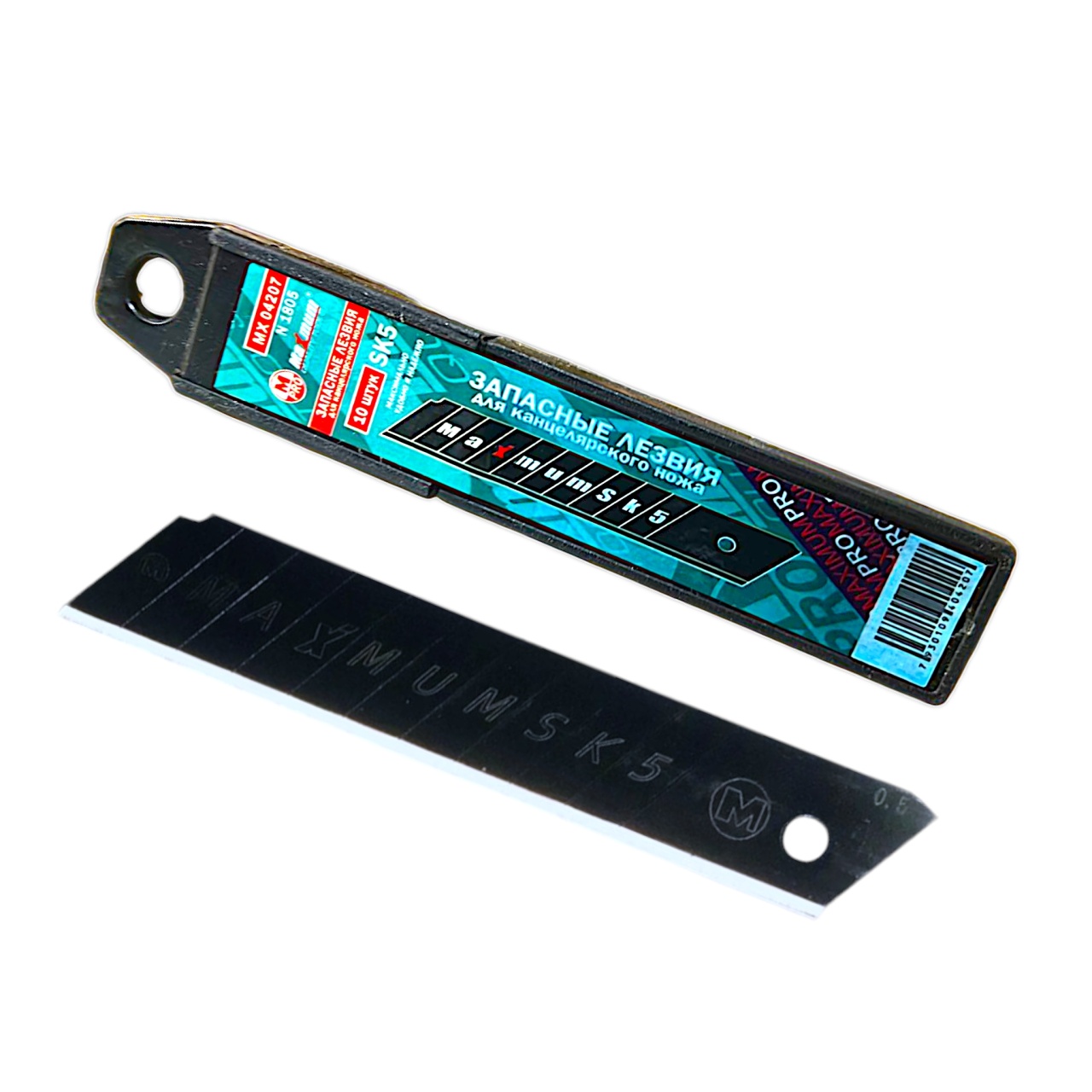 Лезвия для ножа 18 мм, "Maximum" черного цвета изготовлены из стали SK-5.Это новый японский инструментальный материал, который славится своей высокой прочностью.