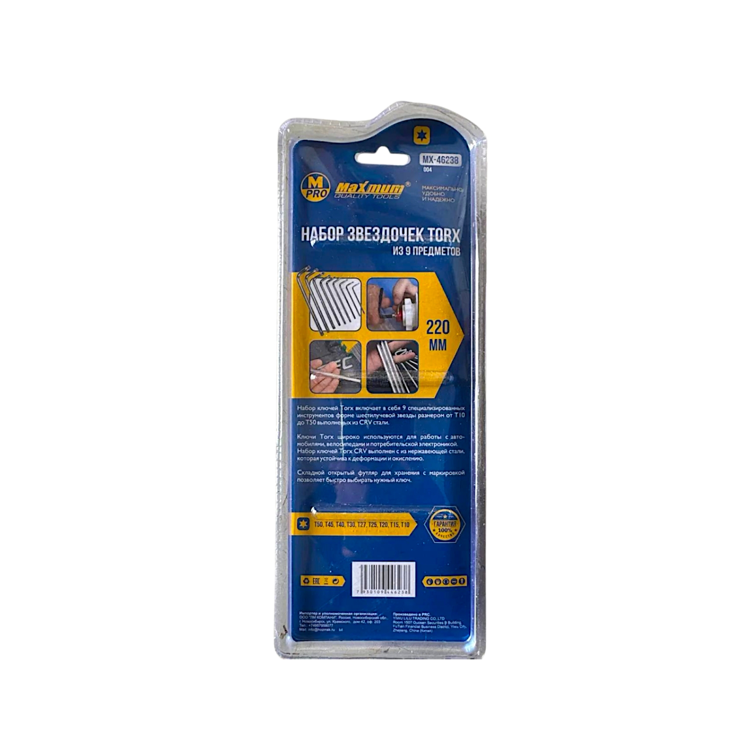 Набор torx ключей от бренда "Maximum" (Максимум) длиной 220 мм — это 9 Г-образных torx ключей двустороннего исполнения в складном футляре. Диапазон размеров набора звездочек torx — от 1.5 до 10 мм. Увеличенная длина позволяет работать с глубоко расположенным крепежом в автомобилях, тормозных системах, топливной аппаратуре, банкоматах, жёстких дисках и велотехнике.