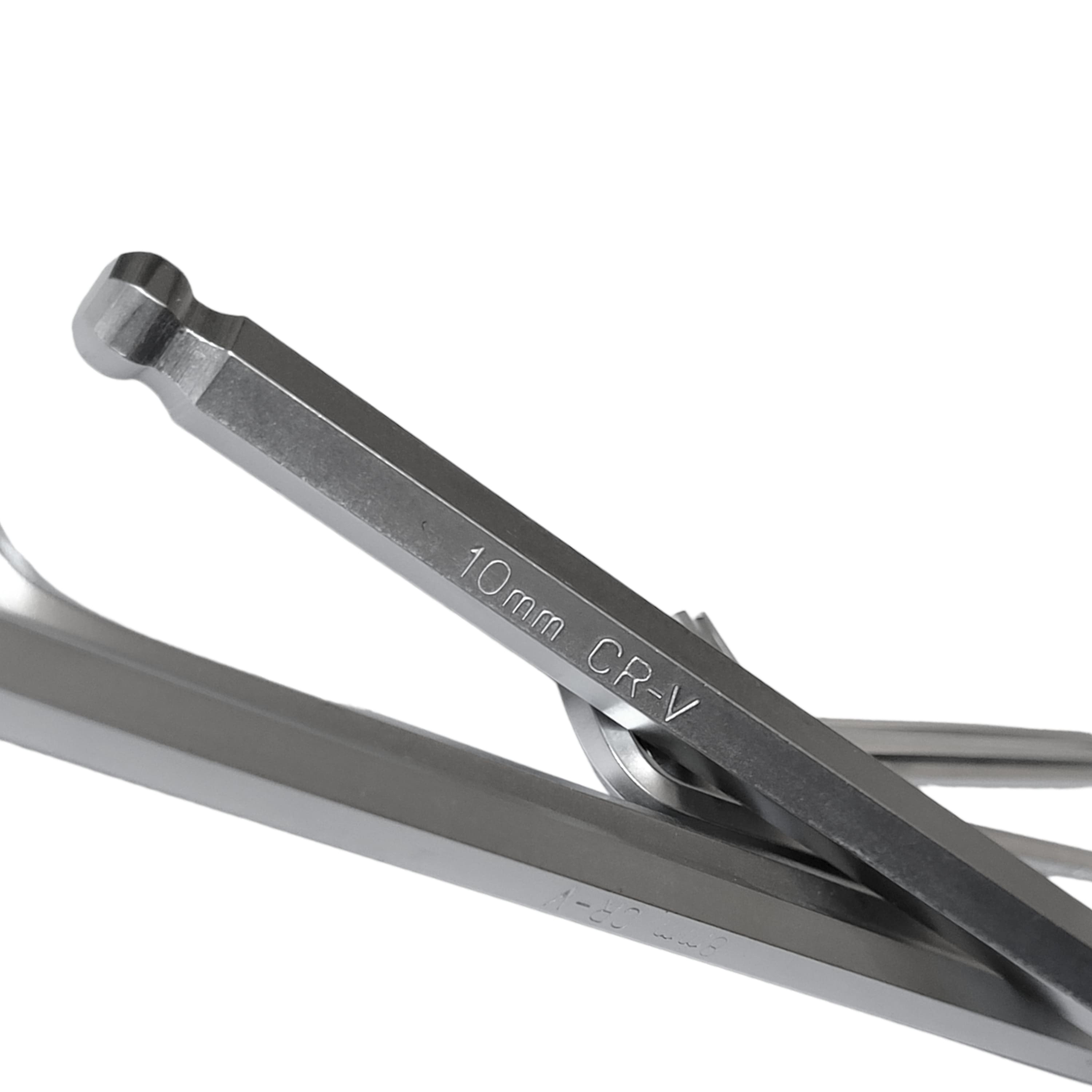 Набор шестигранных ключей от бренда Maximum состоит из 9 предметов в складном открытом футляре для хранения. Маркировка позволяет быстро выбирать нужный ключ. Двухсторонние шестигранники выполнены из высокопрочной стали с антикоррозийным покрытием.