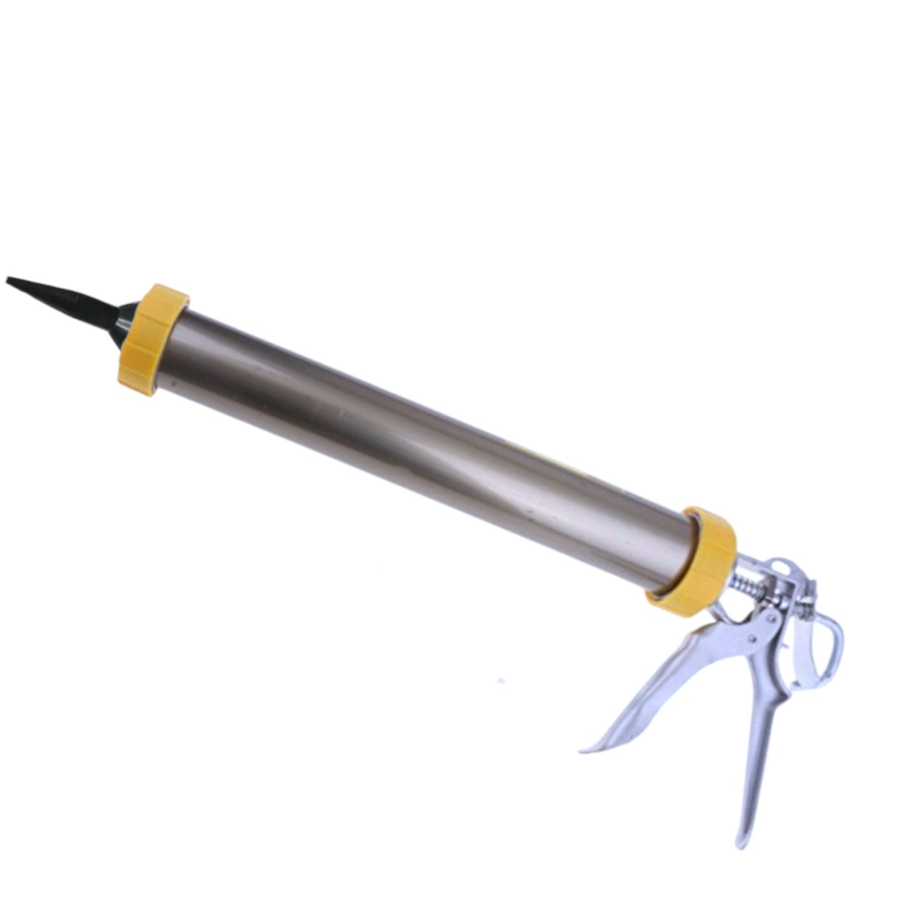 Закрытый профессиональный пистолет для герметика применяется для плавного выдавливания герметика из тубы при нанесении на поверхность при герметизации различных швов и отверстий. Имеет закрытый цилиндрический корпус, выполненный из алюминия и используется для заполнения пустот и щелей герметизирующими материалами.