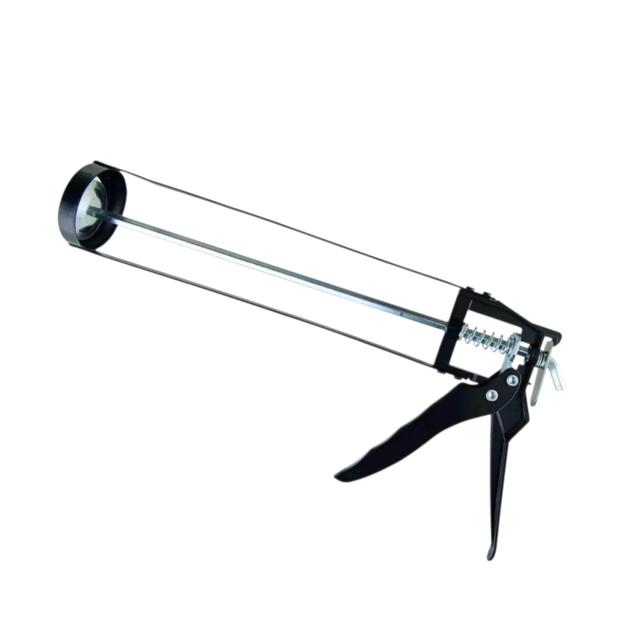 Пистолет под герметик имеет усиленную ручку и шестигранный шток, который позволяет использовать содержимое баллона без остатка.