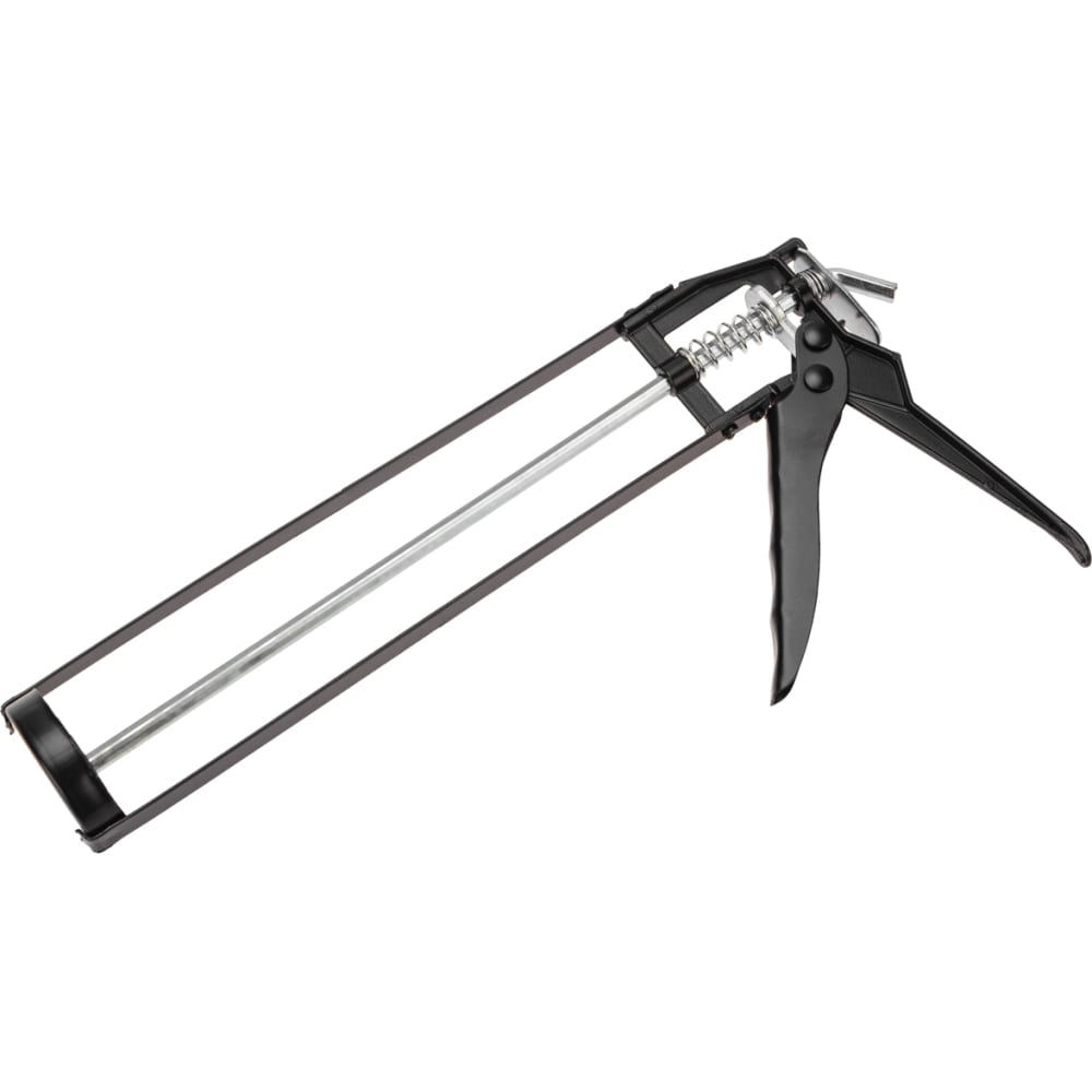 Пистолет для герметика 310 мл "MAXIMUM" скелетный, (черный) предназначен для нанесения герметика и жидких гвоздей на поверхность при выполнении монтажно-строительных и ремонтных работ.