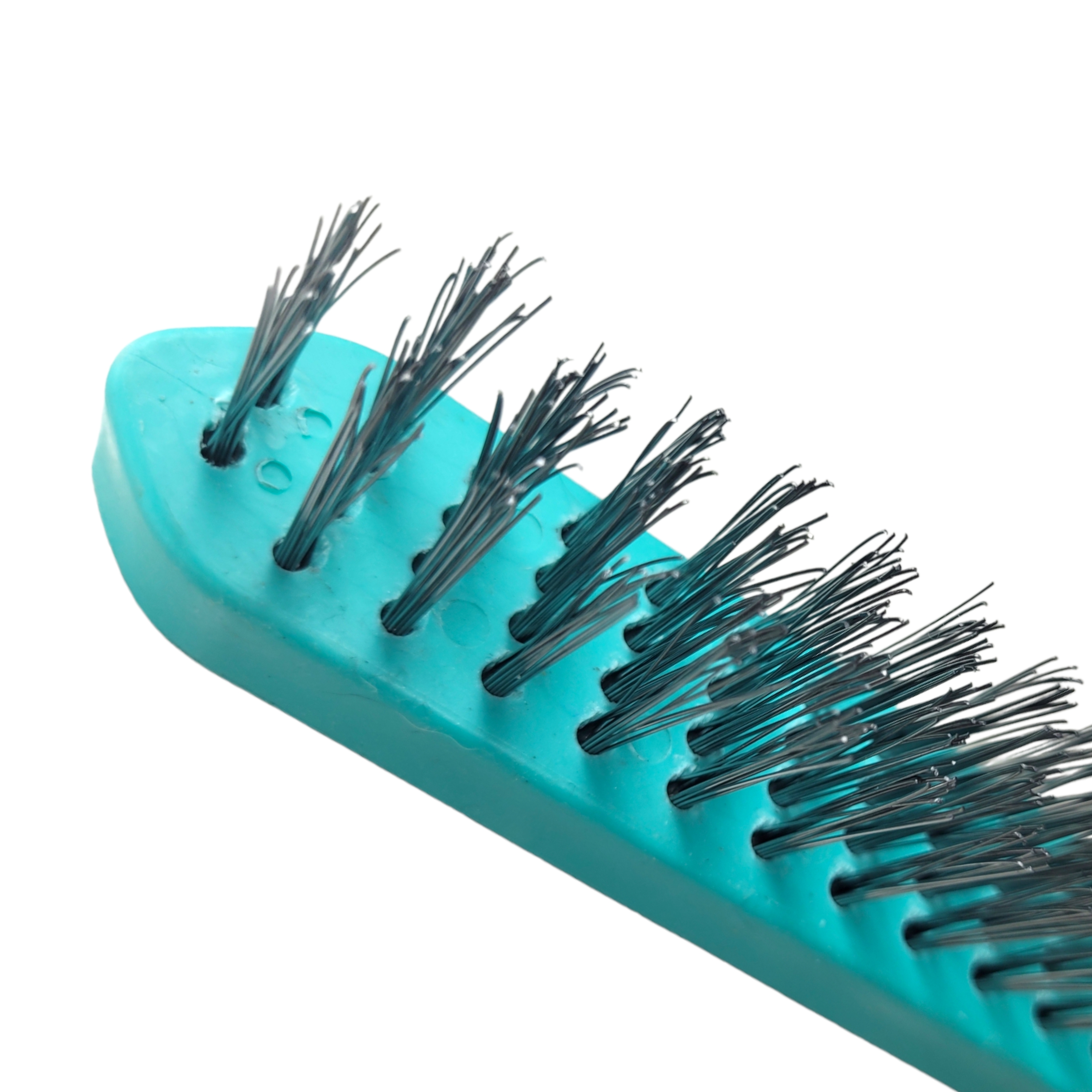 Щетка для зачистки металла в надежном пластиковом каркасе изготовлена из стальной проволоки повышенной прочности, стойкой к воздействию коррозии. Анатомическая форма ручки дополнена отверстием для хранения. Длина щетки с металлической щетиной 12 см, ширина 3 см. Общая длина 22 см. Это эффективный инструмент при снятии лакокрасочных покрытий с изделий из металла и дерева, а также при зачистке поверхностей перед и после сварки.