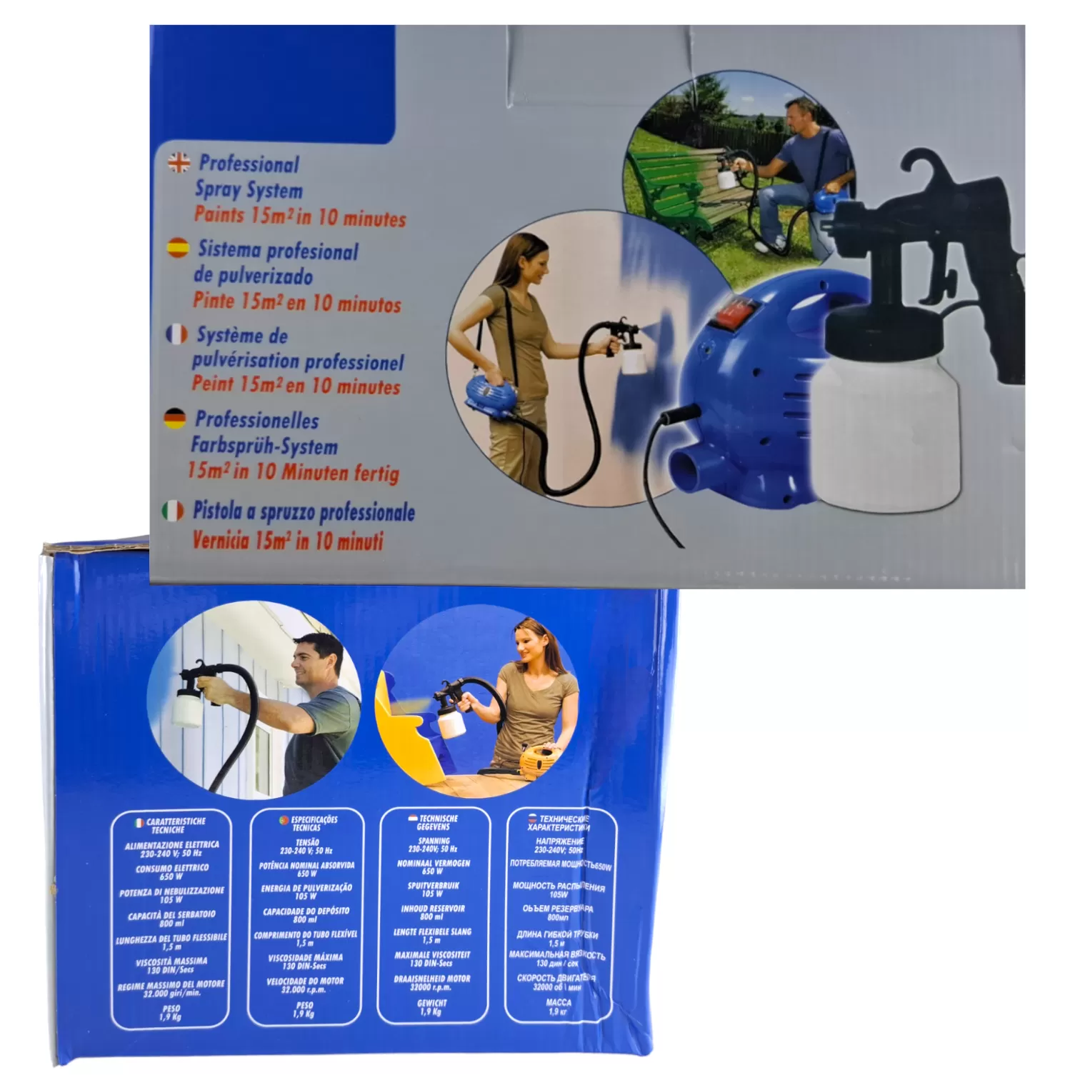 Краскораспылитель электрический – профессиональный инструмент с мощным мотором 650 Ватт, которым легко пользоваться даже в домашних условиях. Нужно всего лишь залить краску в резервуар и нажать на кнопку включения. Мотор работает со скоростью 32000 оборотов в минуту. Мельчайшие частицы краски покрывают поверхность однородным ровным слоем, равномерно заполняя все трещины и неровности. Контролер клапана позволяет устанавливать расход для скорости впрыска. Пистолет распылитель устанавливает необходимое положение для сопла, при этом регулируя форму потока краски.