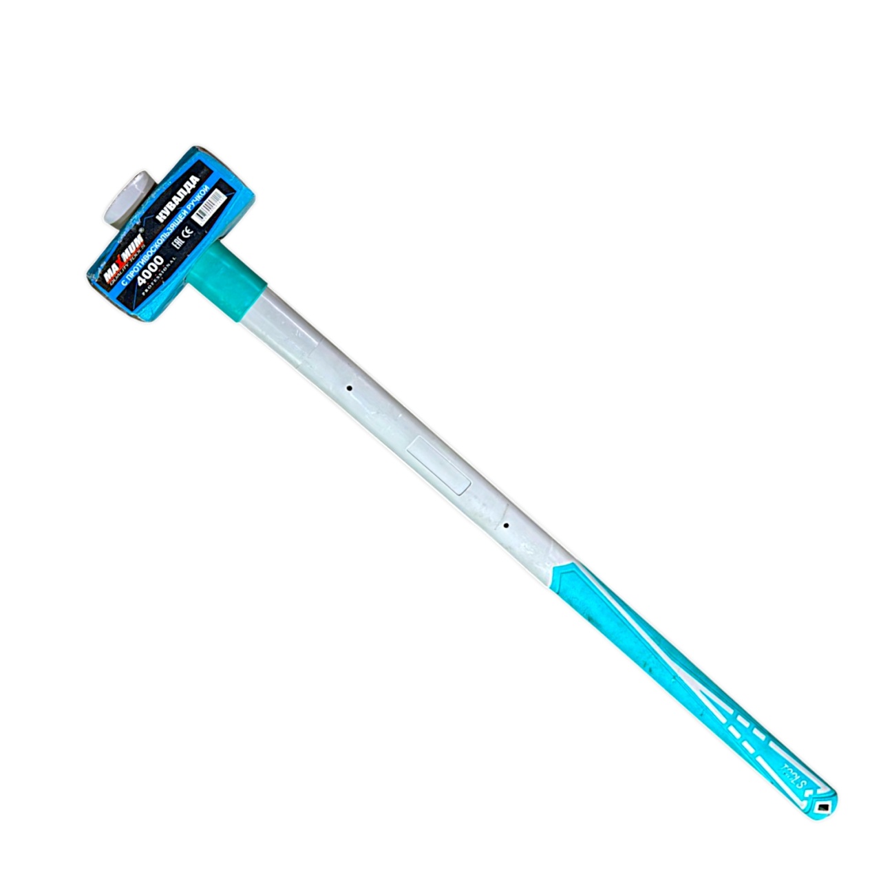 Кувалда стальная 4000 гр. с длинной фиберглассовой рукояткой 90 см оборудована обратным клином для защиты от вылета бойка. Фибергласс представляет собой композит полимера и стекловолокна – это прочный и гибкий материал, который выдерживает большие механические нагрузки и делает рукоятку надежной и удобной. Наличие резинового кольца на рукояти под бойком защищает её от случайных ударов.