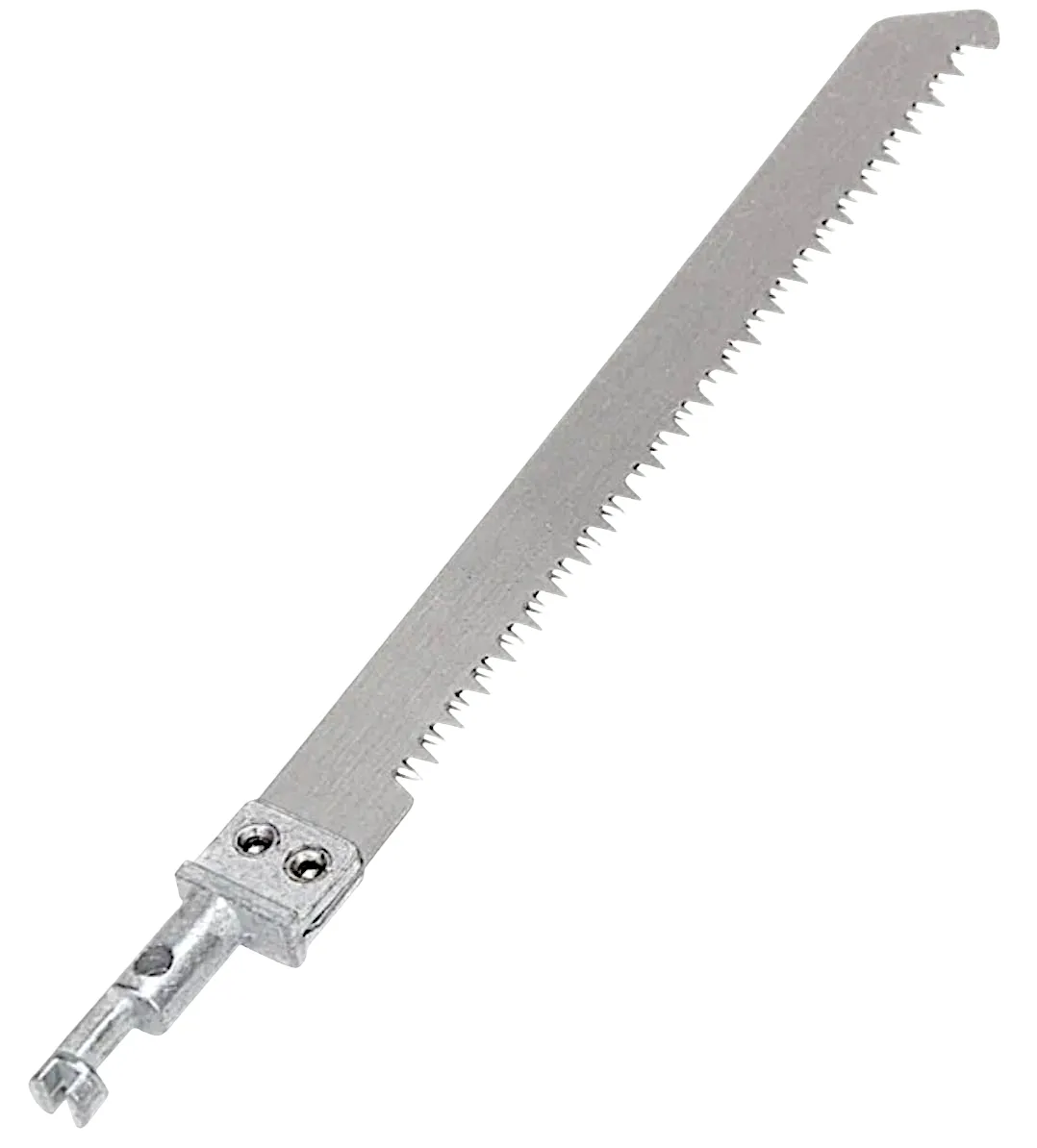 Многофункциональная пила 250 мм поставляется в комплекте с 6 сменными лезвиями, которые применяются для резки заготовок из дерева, пластика и мягких металлов. Может быть использована как пила, ножовка и лобзик при установке соответствующих насадок. Металлический корпус ножовки 250 мм дополнен пластиковой рукояткой, которая не скользит и удобно лежит в руке. Благодаря продуманной конструкции лезвия легко и быстро меняются.