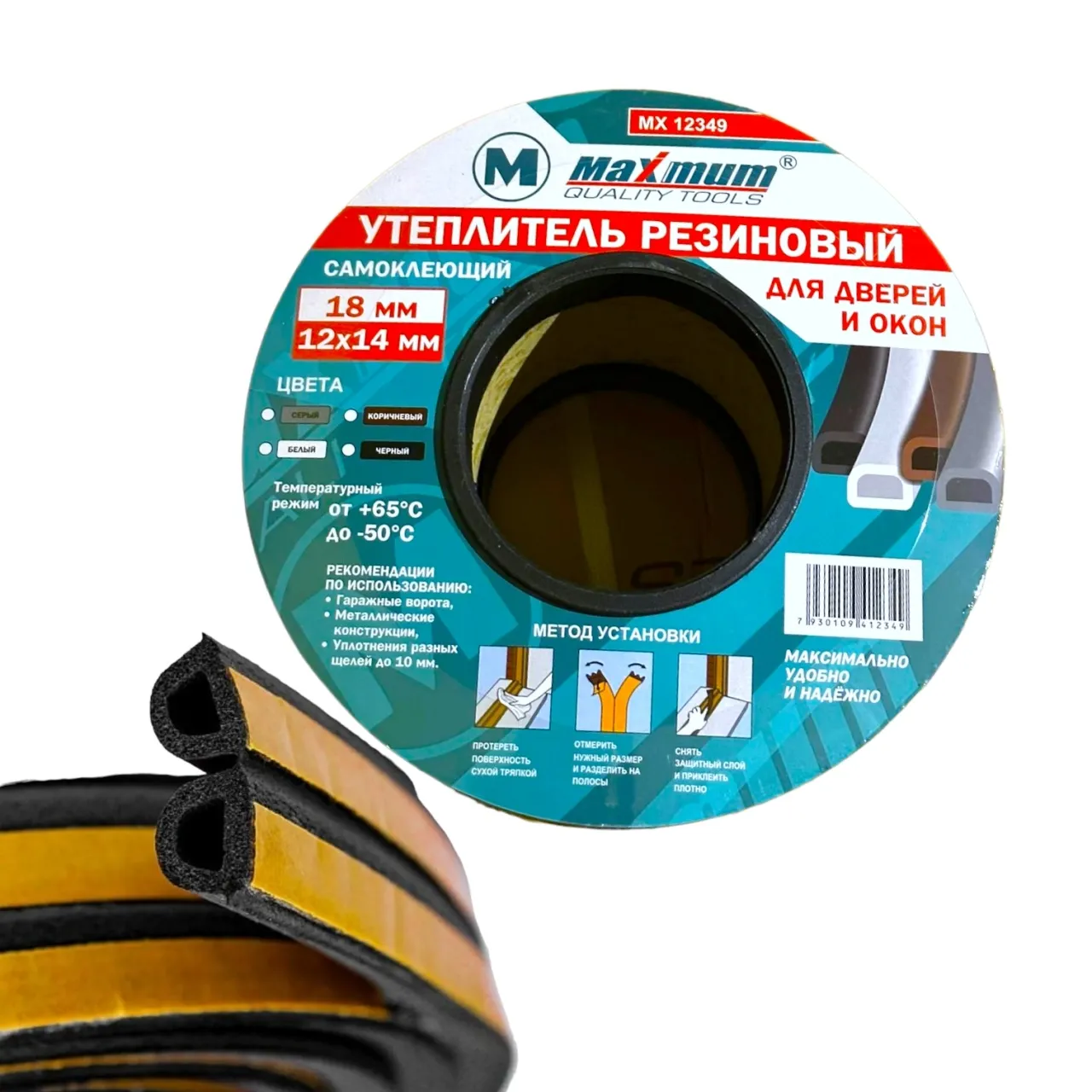 Уплотнитель чёрный резиновый самоклеящийся 18 метров от "Maximum Quality Tools" надежно герметизирует стыки и щели в дверях и окнах. Уплотнитель с D профилем 14×12 мм отличается влагостойкостью, отличной звукоизоляцией и может быть использован от -50 до + 65 градусов.