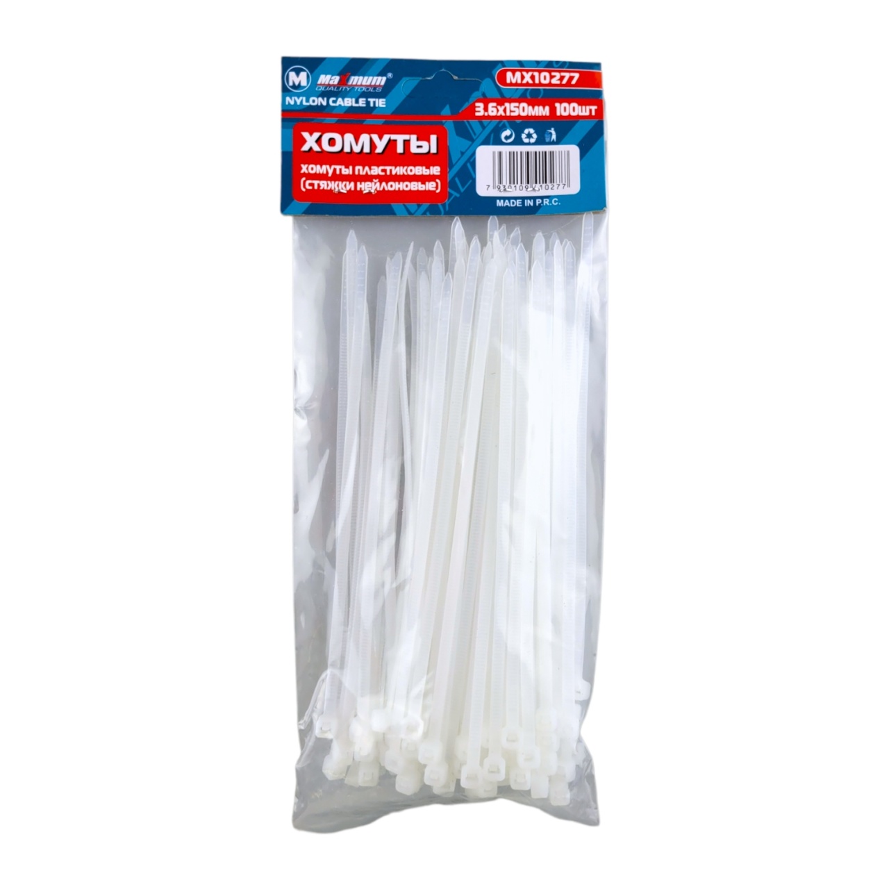 Хомуты нейлоновые от «Maximum Quality Tools» 3.6x150 мм широко используются для крепления простых конструкций - систем монтажа, гибких воздуховодов, электропроводки, теплоизоляционных материалов и т.д. Прочные затягивающиеся хомуты-стяжки имеют внутренний зубчатый зацеп и головку с двойным зажимом. Материал влагостойкий, подойдет для наружного монтажа.