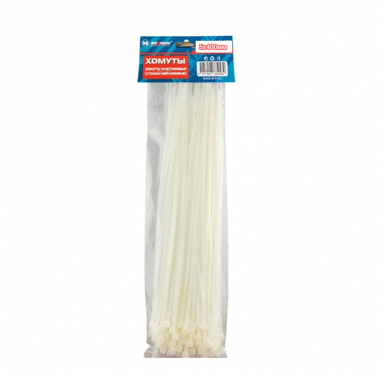 Белый хомут кабельный нейлоновый – это крепежное изделие, предназначенное для герметизации и обвязки соединений и проводов, других конструкций. Гораздо удобнее и практичнее обычной проволоки, поэтому используется во всех без исключения видах ремонтных, строительных и сантехнических работах. Нейлоновые хомуты обладают стойкостью к воздействию низких и высоких температур, а также устойчивостью к ультрафиолетовому излучению. Зубчатый зацеп и головка рассчитаны на одноразовое использование.