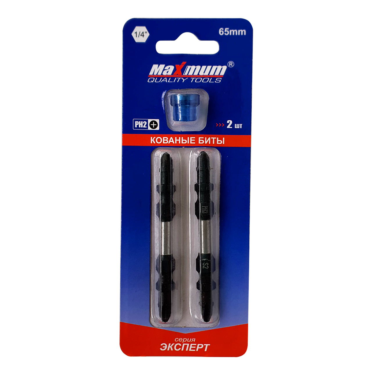 Набор бит кованых PH2, 65 мм, 2 штуки, "Maximum" изготовлен из высокопрочной легированной стали S2.