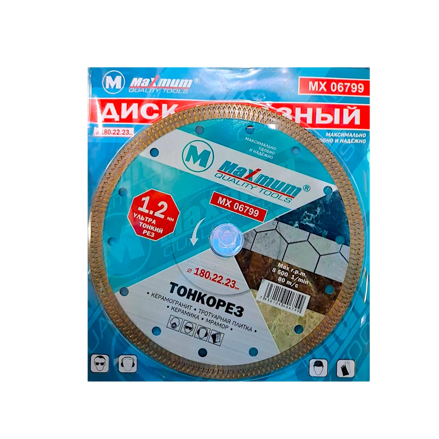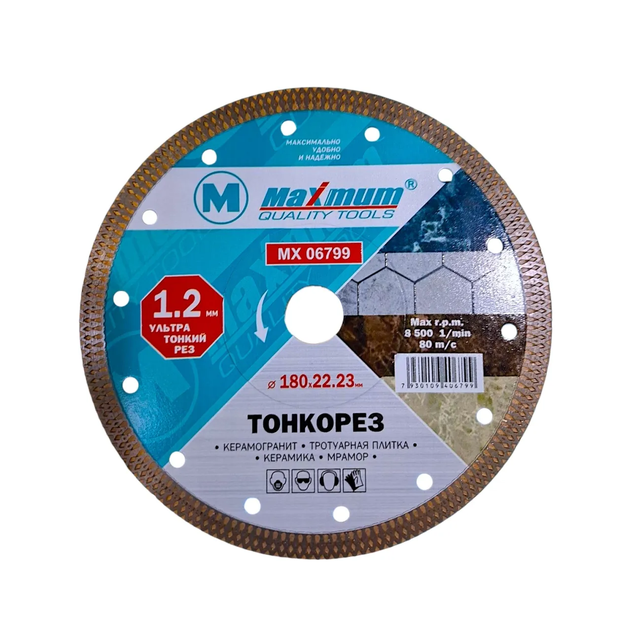 Диск алмазный 180мм "MAXIMUM" 078 тонкий рез предназначен для сухой резки хрупких материалов: тонких каменных плит и керамической плитки. При изготовлении диска использована новая технология горячего прессования, что делает его более надежным и долговечным.