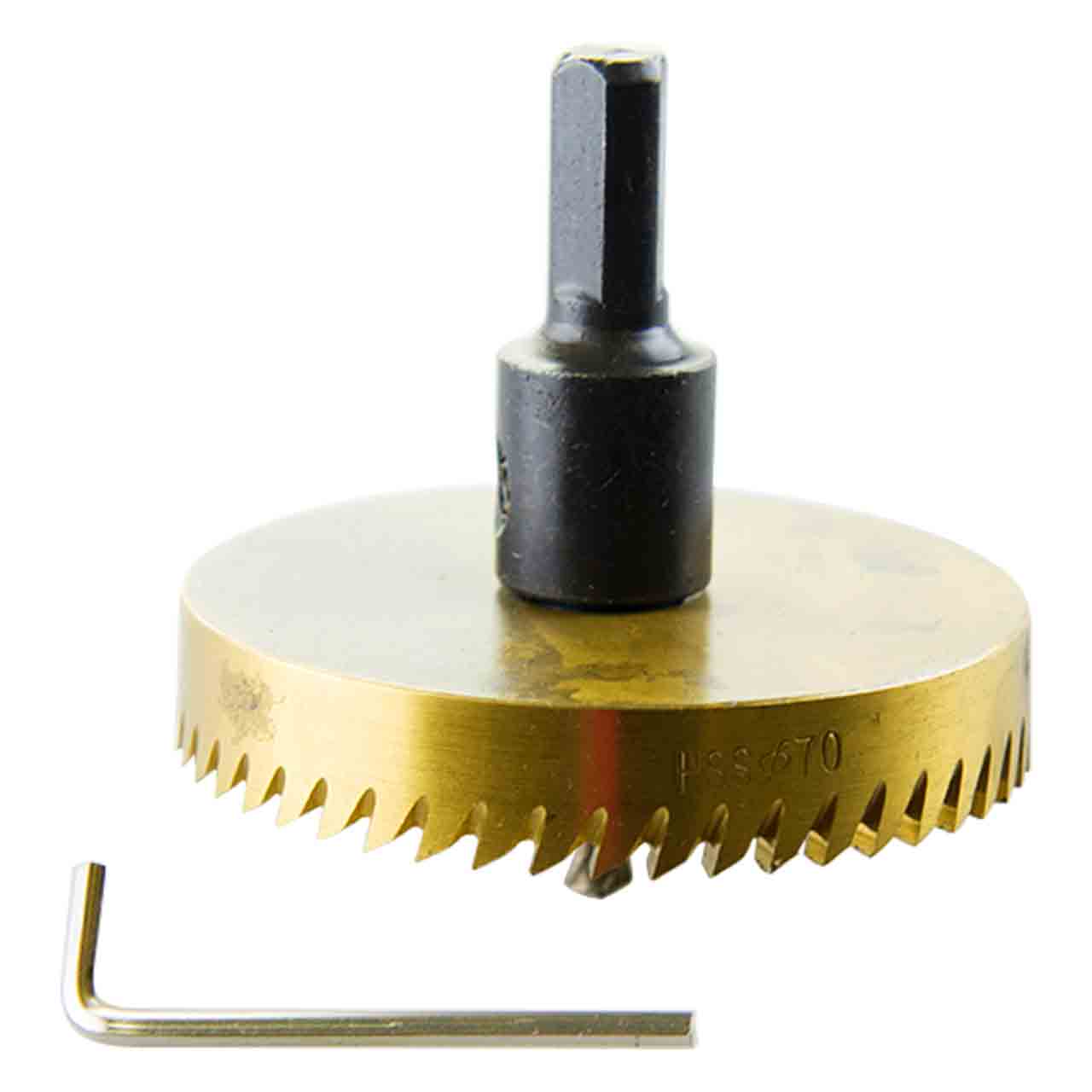 Коронка по металлу 70 мм кольцевого типа с шестигранным хвостовиком от Maximum Quality Tools предназначена для сверления отверстий в нержавеющей стали до 3 мм (на низких оборотах), а также в алюминии, латуни и стали.