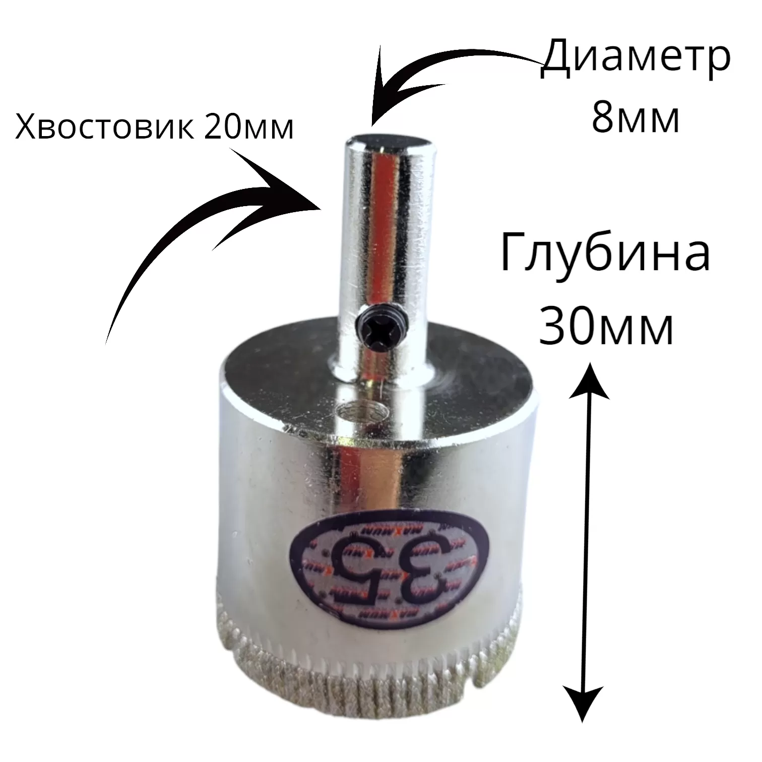 Коронка алмазная по керамограниту 35 мм с центровиком используется для вырезания отверстий правильной круглой формы, например при прокладке коммуникаций через облицованную поверхность. Подходит для обработки керамогранита, камня или керамической плитки. Устанавливается как на стационарные сверлильные станки, так и на дрели или перфораторы. Острое центровое сверло позволяет просверлить отверстие точно в нужном месте.