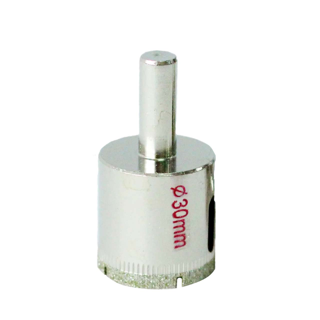 Алмазная коронка по кафелю и керамике создает ровные круглые отверстия диметром 30 мм в хрупких твердых материалах: керамической плитке, тонком керамограните, искусственном камне и т.п.