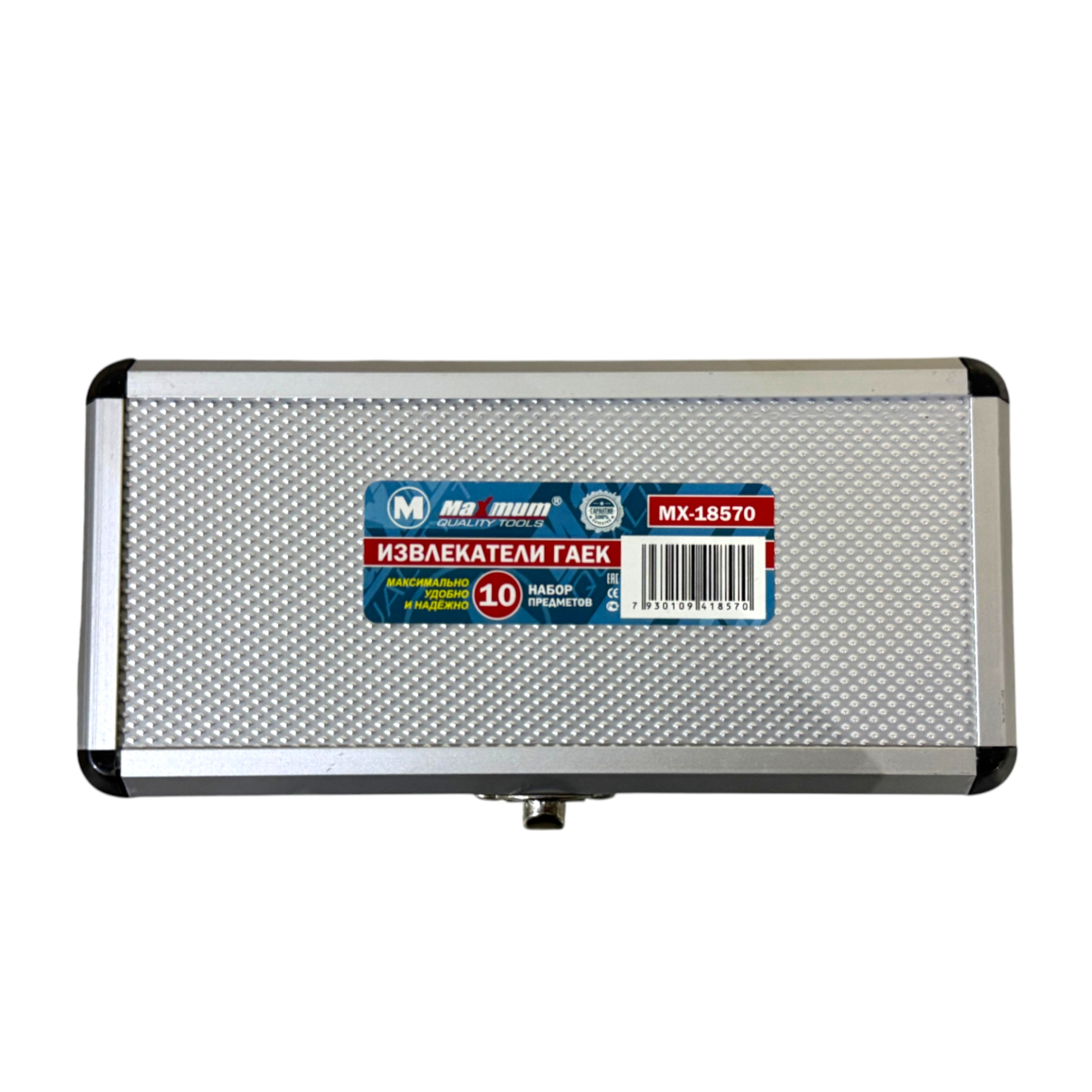 Комплект из 10 экстракторов (ввертышей) в виде торцевых головок от "Maximum" предназначен для решения одной из самых неприятных проблем — выкручивания сломанных болтов, шпилек и сорванных гаек. Инструмент изготовлен из высококачественной легированной стали хром-молибден (Cr-Mo), что обеспечивает ему высокую прочность, износостойкость и способность работать с твердыми металлами.