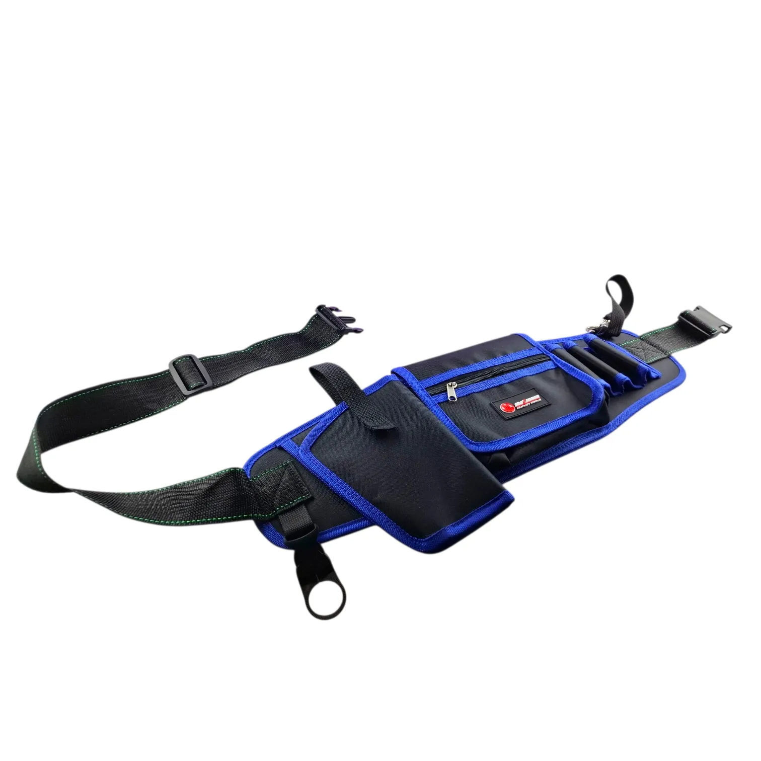 Сумка-пояс для инструментов с ремнем 150 см имеет 4 открытых отсека и один большой карман на липучке, а также карман для шуруповерта. Пояс значительно экономит время при высотных работах. Регулируемый по длине ремень оснащен быстроразъемной надежной застежкой фастекс. Пояс для инструментов выполнен из высокопрочного водоотталкивающего материала. Различные карманы и секции позволяют аккуратно разместить все необходимые инструменты и аксессуары.